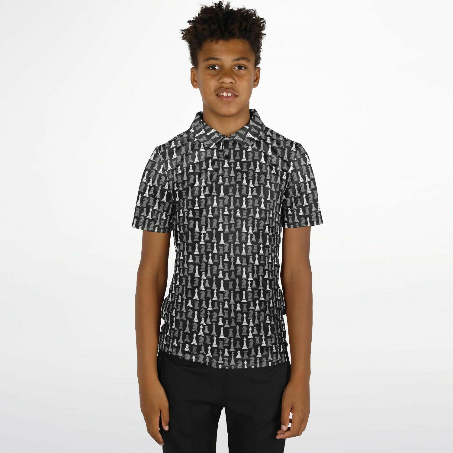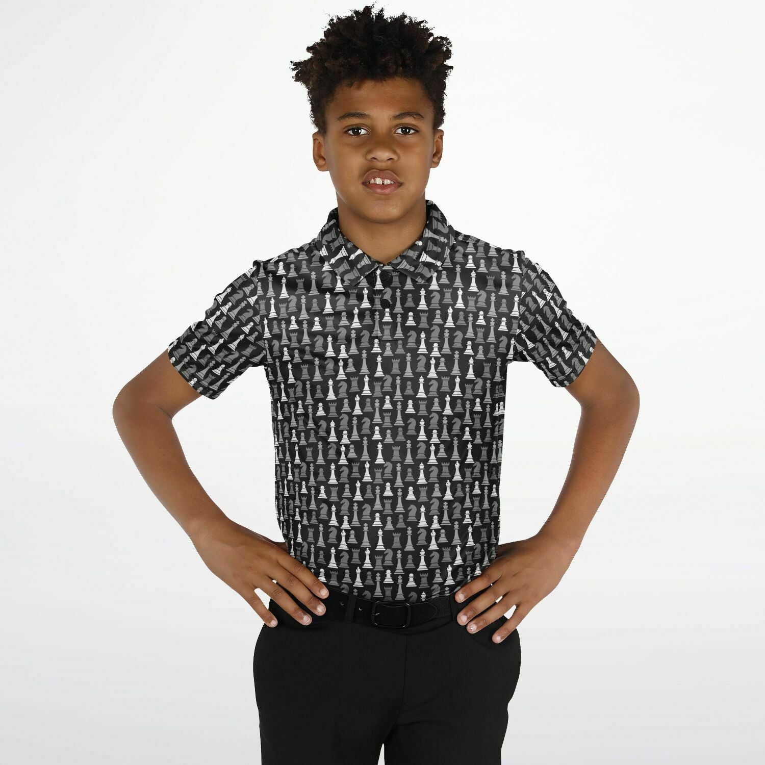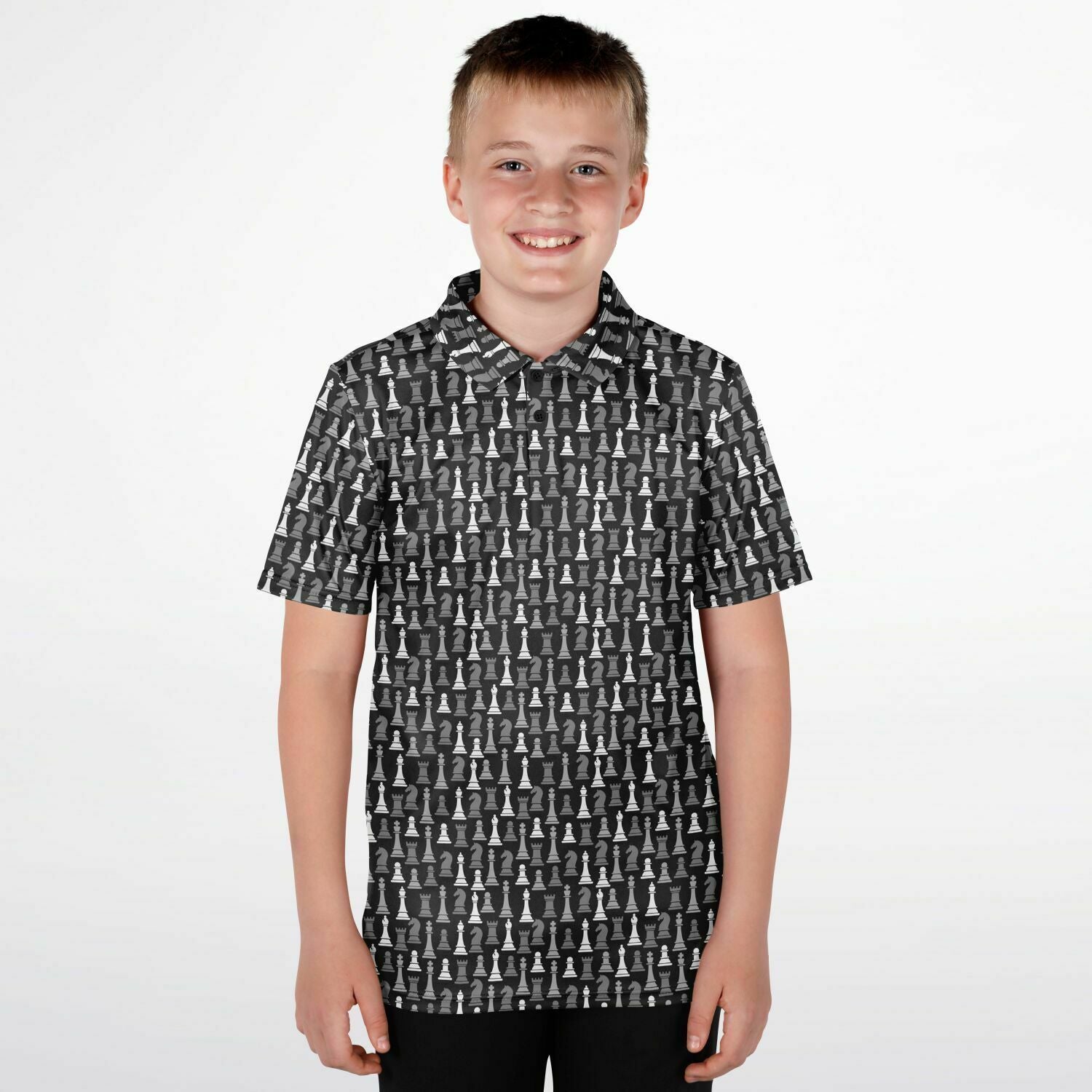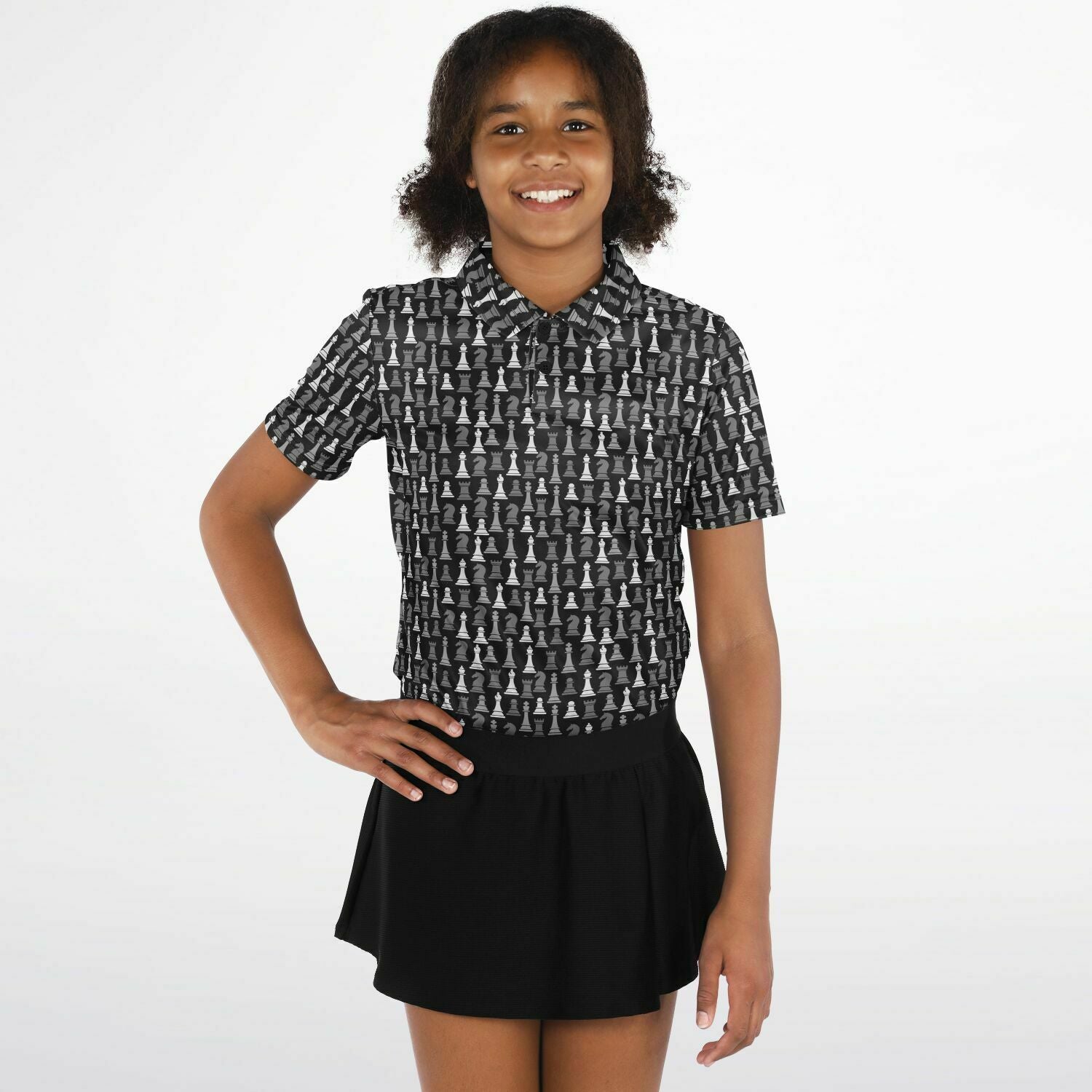 Checkmate in style! This youth polo shirt is for the sharpest minds on the board. Featuring full sublimation print, it's the perfect mix of stylish and smart - ideal for school days, club tournaments, or just schooling the competition at recess! This polo shirt also boasts breathable, stretch fabric and UPF 50+ protection, perfect for the pool or beach! You could even pair it with our swimwear!
